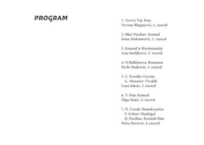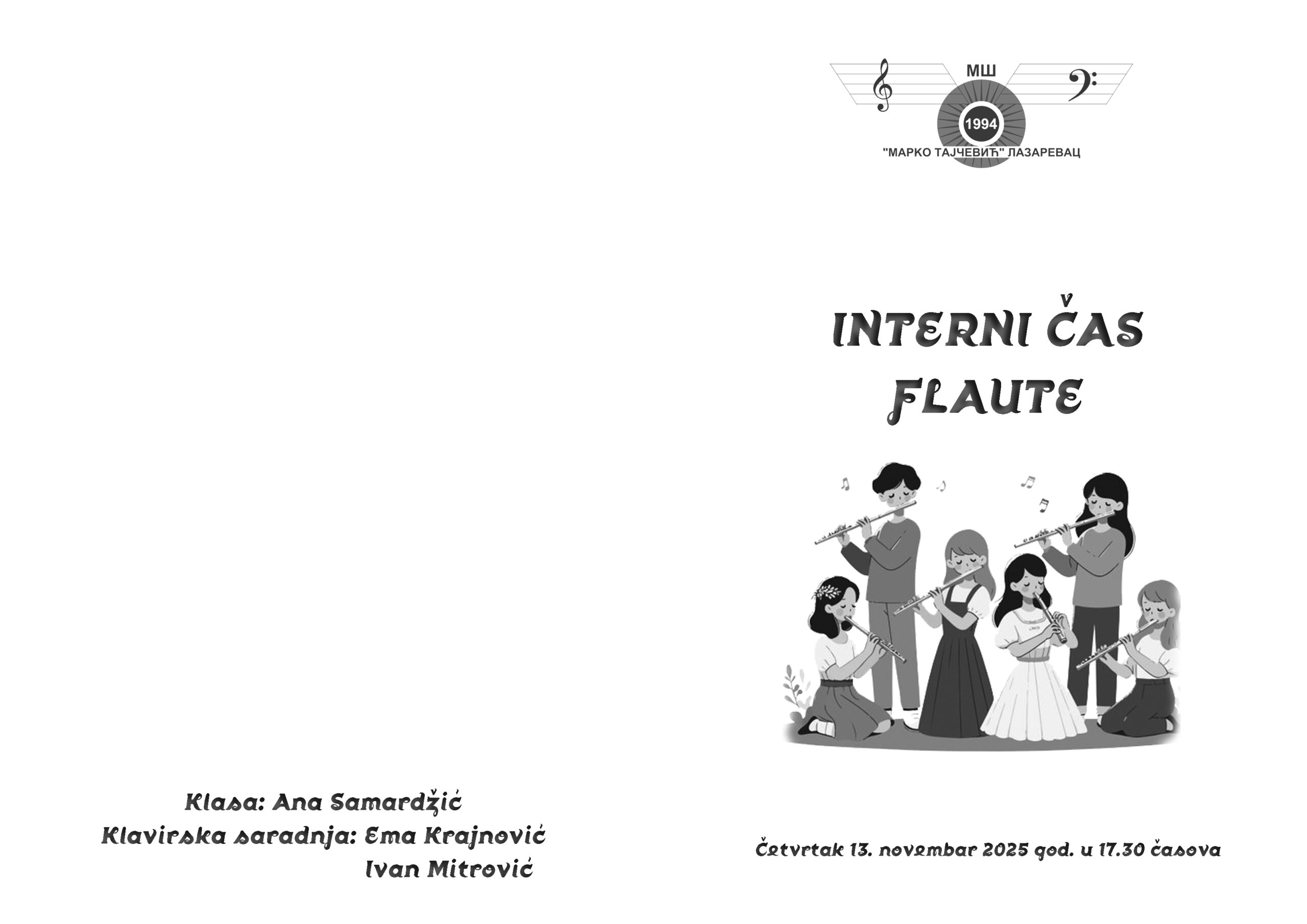У четвртак 13. новембра одржан је Интерни час флауте (класа Ане Самарџић, проф.) у издвојеном одељењу наше музичке школе у Вранићу. Ученици су се представили програмом који су спремили у току првог класификационог периода ове школске године. Било је то веома лепо представљање целе класе, а за неке ученике је то био први наступ у животу. Ускоро ово издвојено одељење спрема заједнички наступ свих класа (флаута, виолина, кларинет, клавир, хармоника, солфеђисти и оркестар). Радујемо се новом дружењу са веома заинтересованом и бројном публиком.