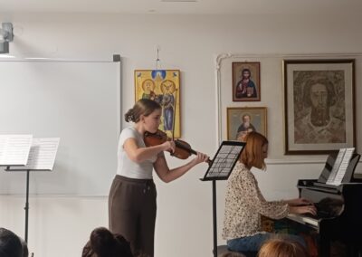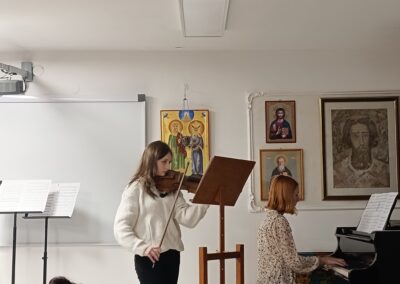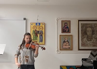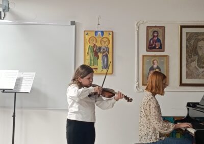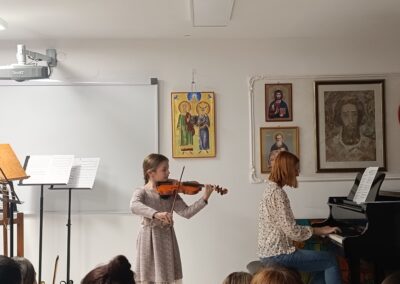 У четвртак, 20.11.2025., у сали наше музичке школе, одржан је интерни час класе проф. Ане Милошевић у сарадњи са колегиницом Јеленом Петрекановић. Ученици су се успешно припремили за јавни наступ и представили публици оно што су научили од почетка ове школске године. Интерни час је завршен заједничким наступом професорки и ђака.