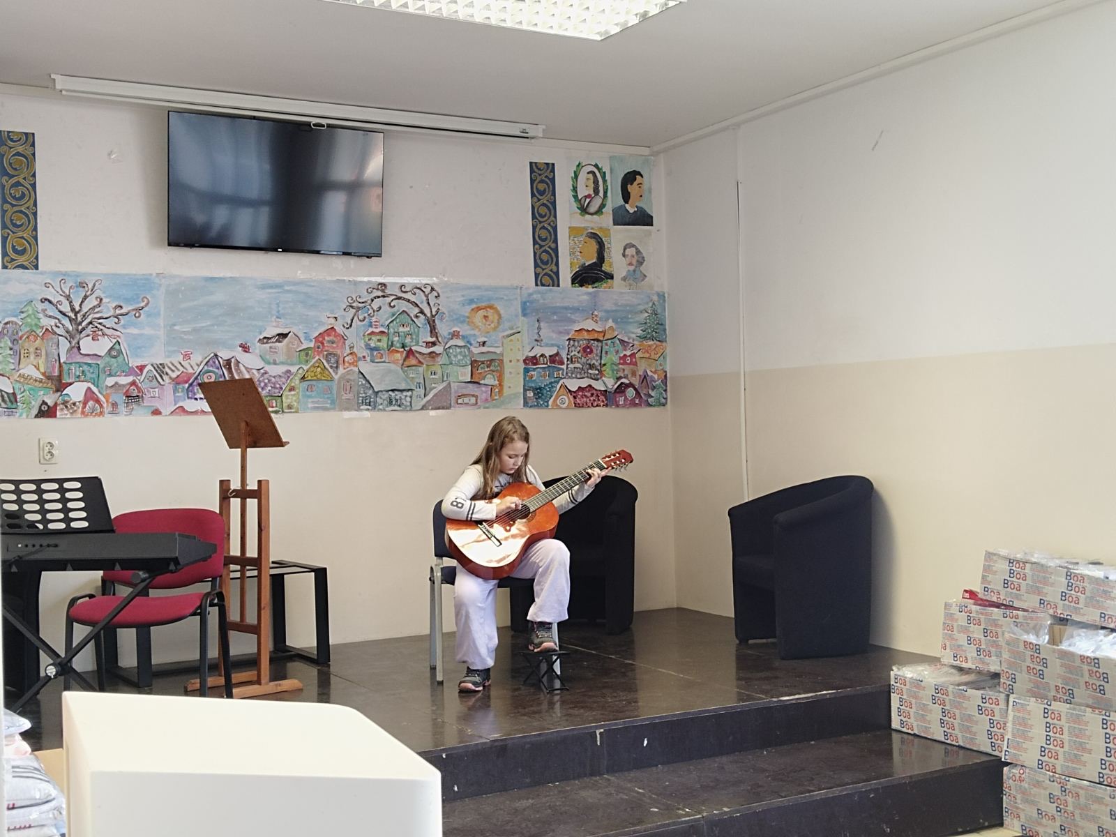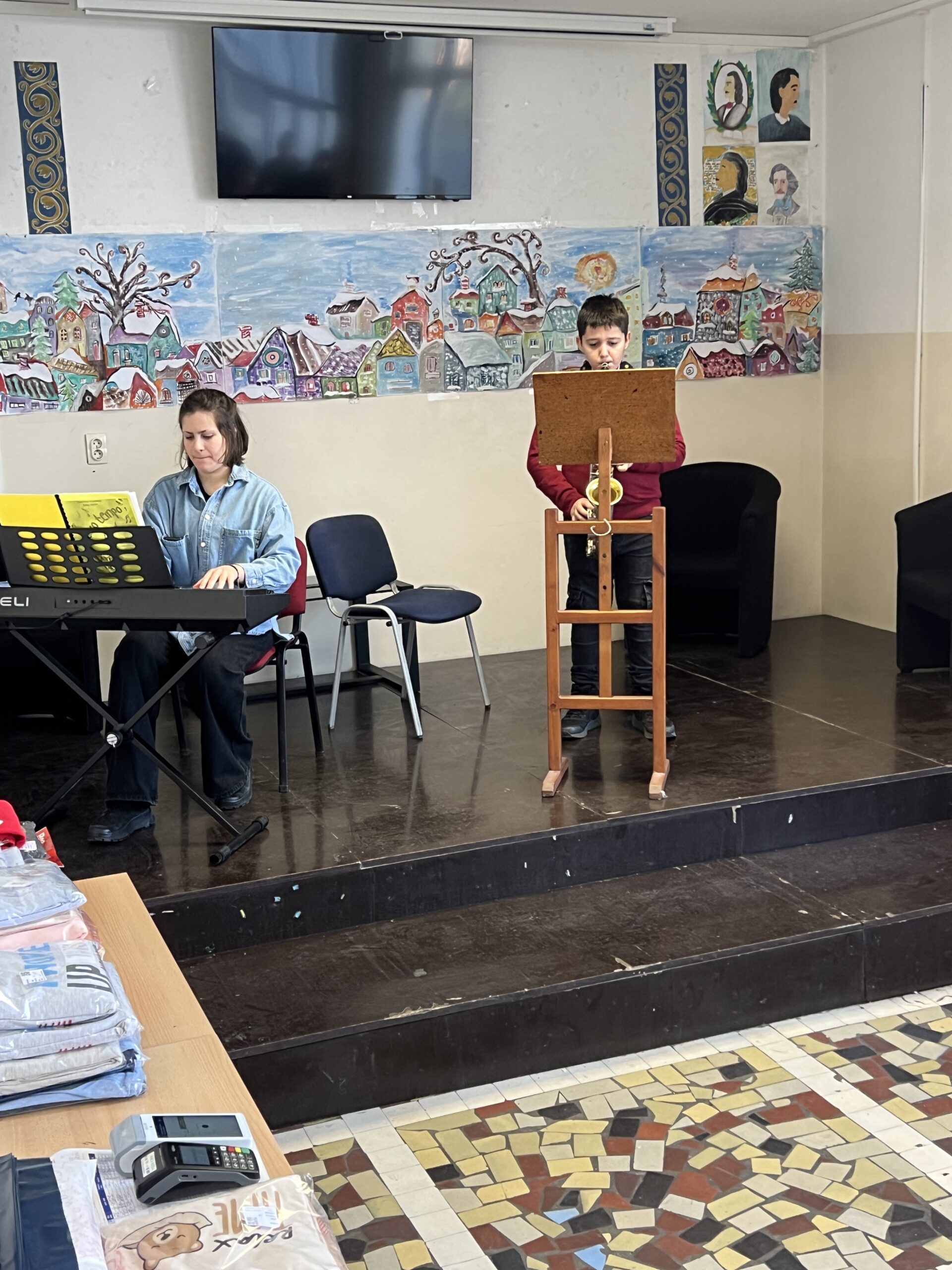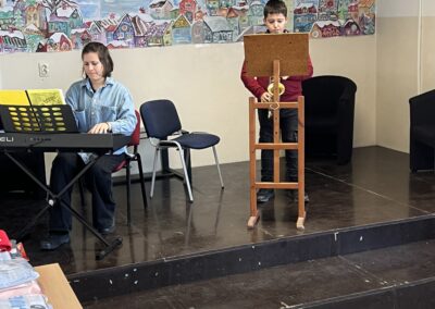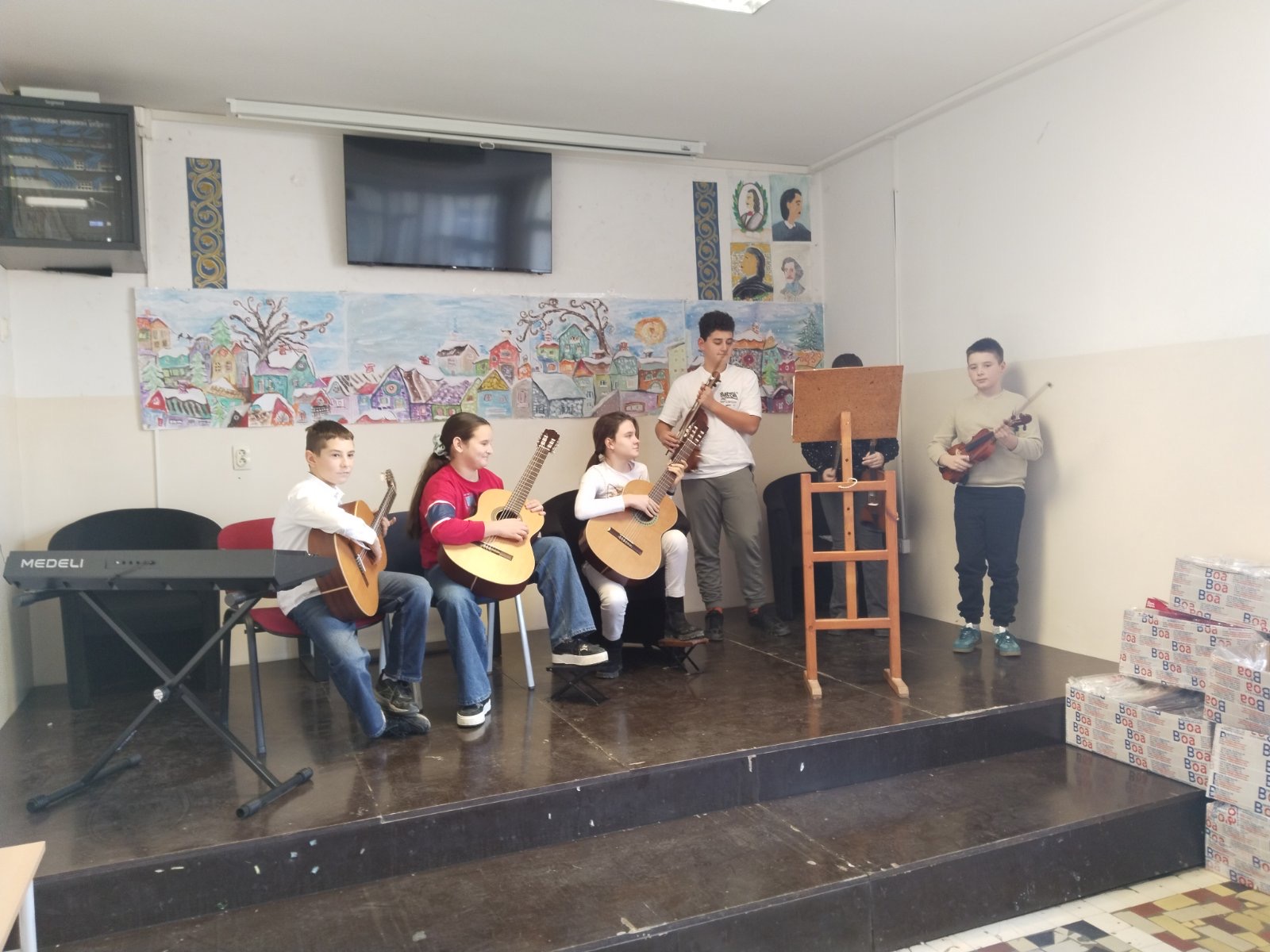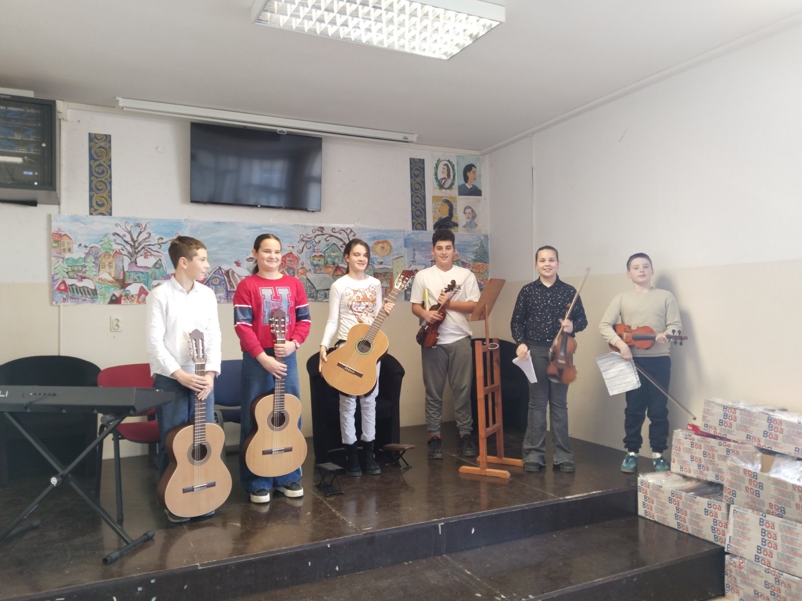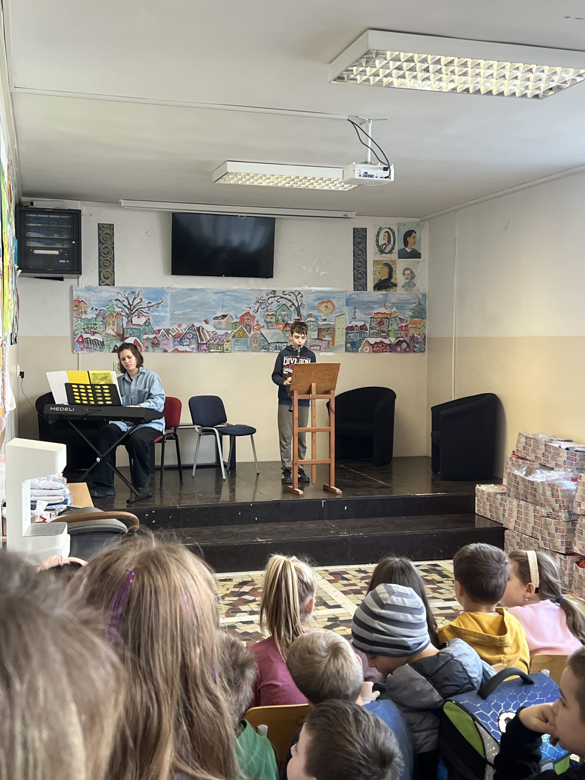 У уторак 23. децембра, са почетком у 11.30 часова, одржан је Новогодишњи матине у Великој Моштаници. Ученици издвојеног одељења наше музичке школе наступили су у сали ОШ “Бранко Радичевић”. Атмосфера код многобројне публике била је веома позитивна, са пуно осмеха, али и пажње. На концерту су сви уживали, како извођачи, тако и публика.