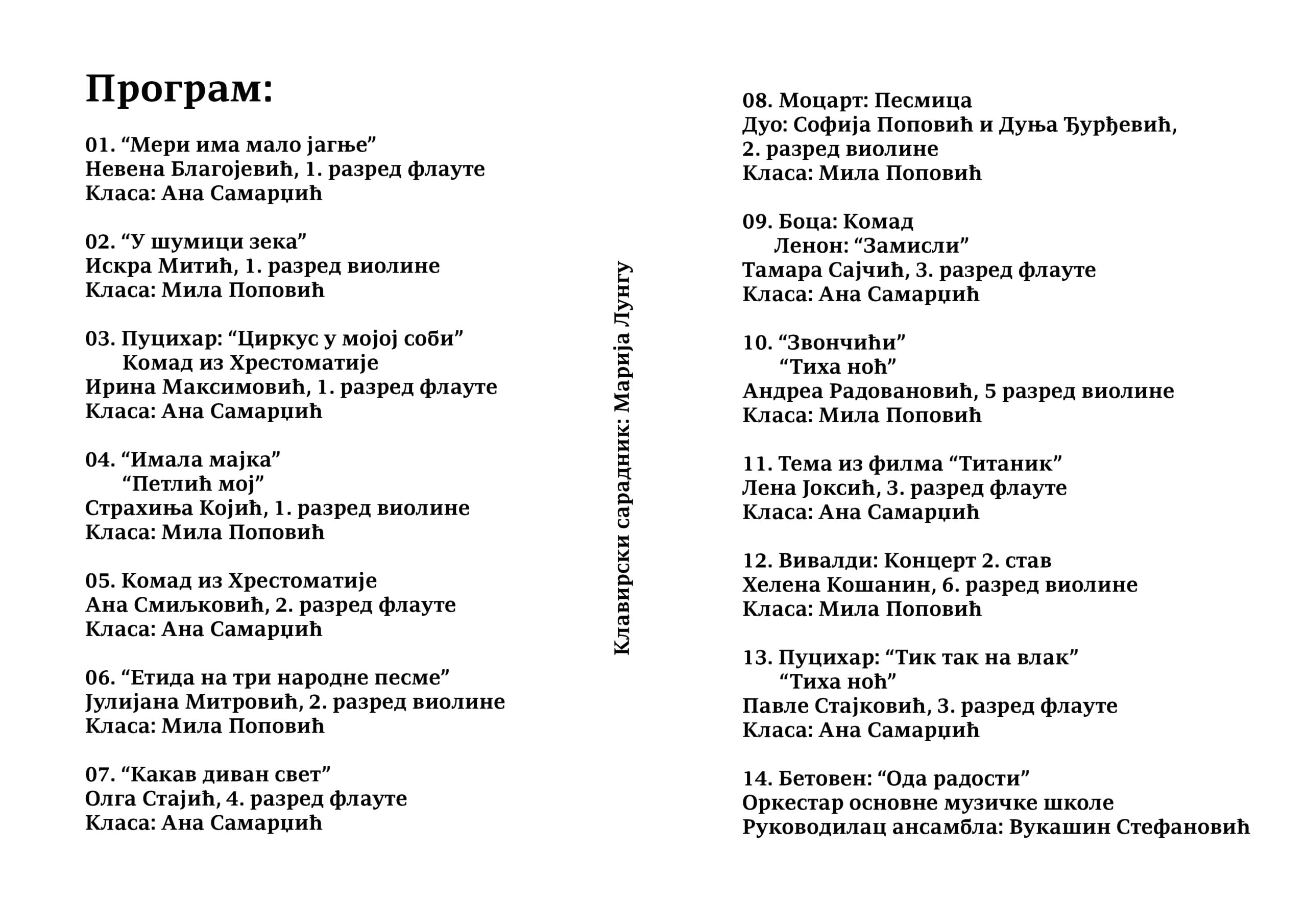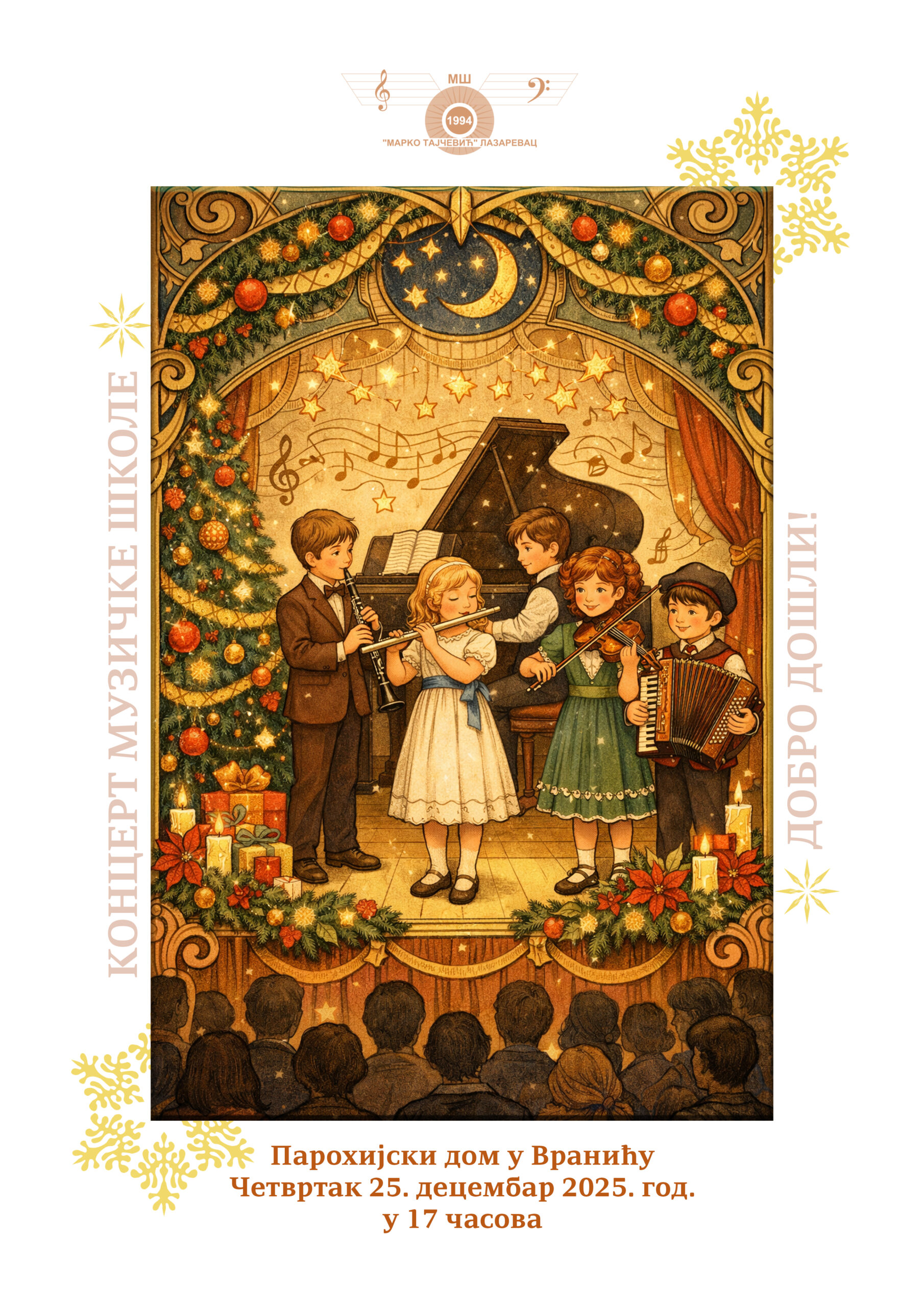 У четвртак 25. децембра 2025. године са почетком у 17 часова, одржан је концерт ученика издвојеног одељења наше музичке школе у Вранићу.