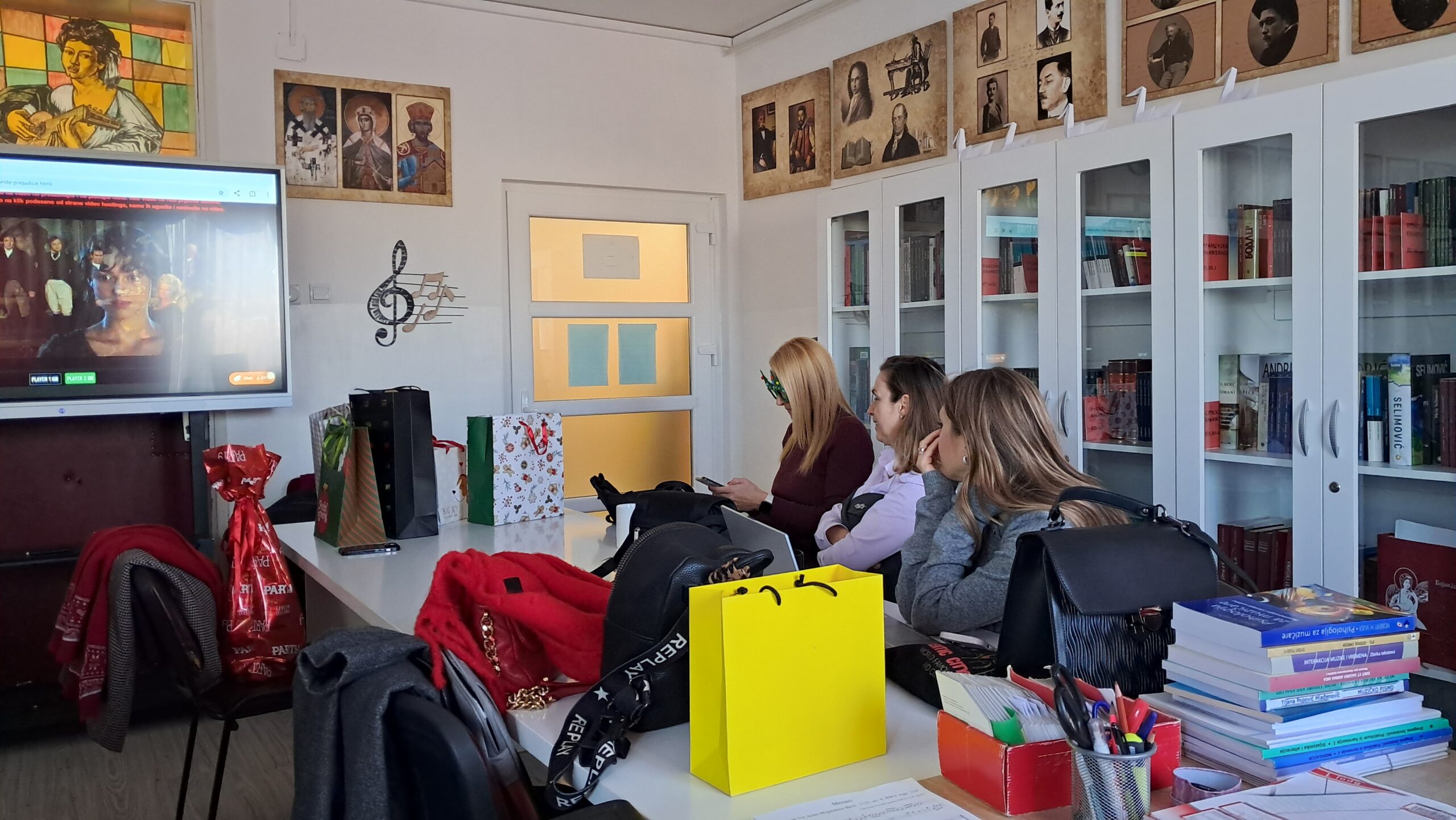 Прво полугодиште и 2025. годину завршили смо у веселој атмосфери и дружењу. У оквиру обележавања 250 година од рођења Џејн Остин, енглеске књижевнице, ученици наше средње школе су са својим професоркама српског, енглеског, руског и француског језика у библиотеци погледали филм Гордост и предрасуде из 2005. године, редитеља Џо Рајта.