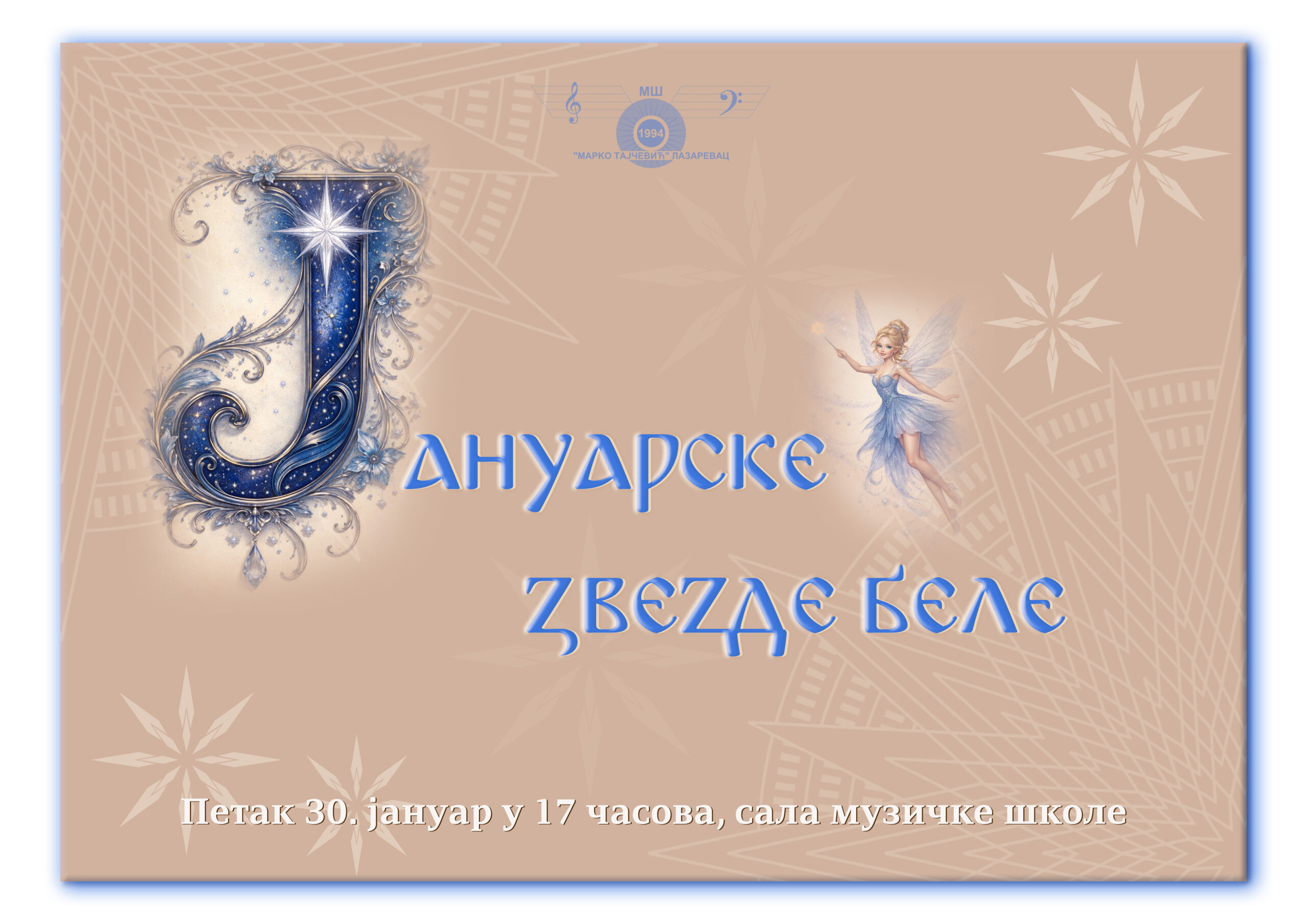 У петак 30. јануара 2026. године у сали музичке школе, са почетком у 17 часова, одржан је концерт “Јануарске звезде беле”. Традиционално сваког јануара приређује се овај концерт на ком наступају најмлађи ученици наше школе. Наши прваци.