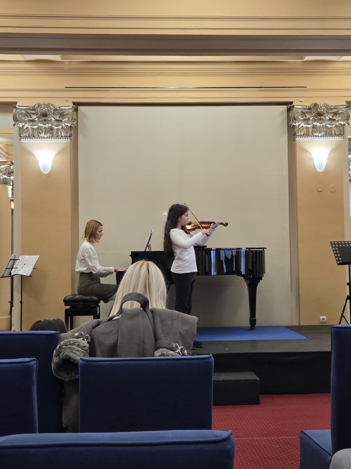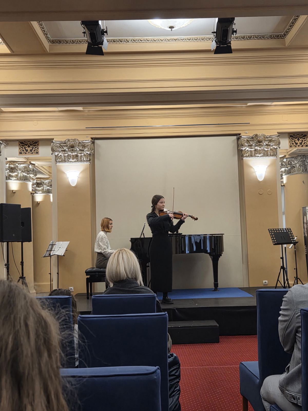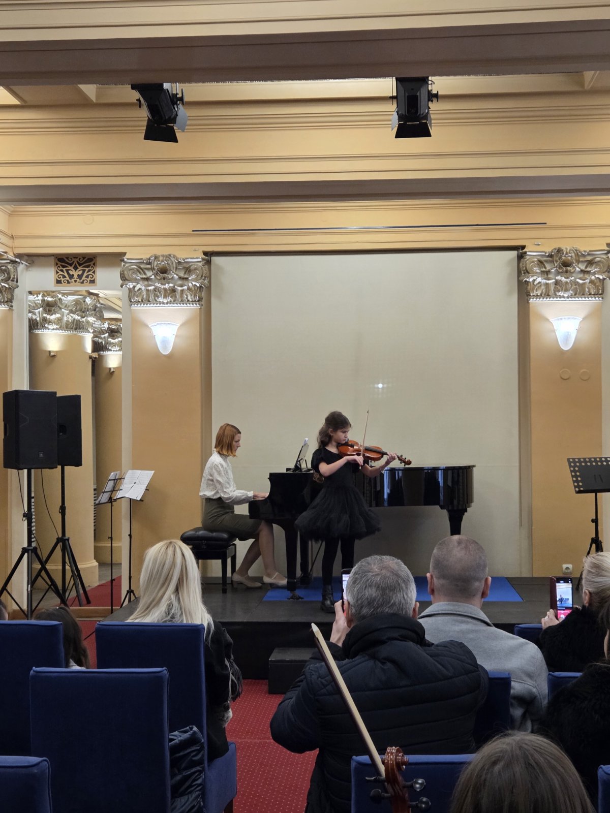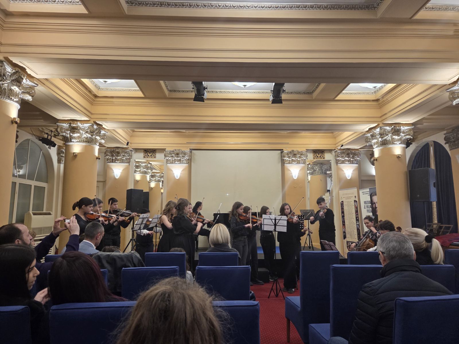 У организацији Министарства просвете Републике Србије ученици гудачког одсека наше школе гостовали су у нашем главном граду у прелепом амбијенту сале Центра лепих уметности Гварнеријус. Наступили су ученици и гудачки ансамбл основне музичке школе који су својим репертоаром уприличили интересантан музички догађај присутној публици и приказали да наша школа има музички подмладак који ће у ближој будућности значајно допринети општем извођачком квалитету наше средње музичке школе.