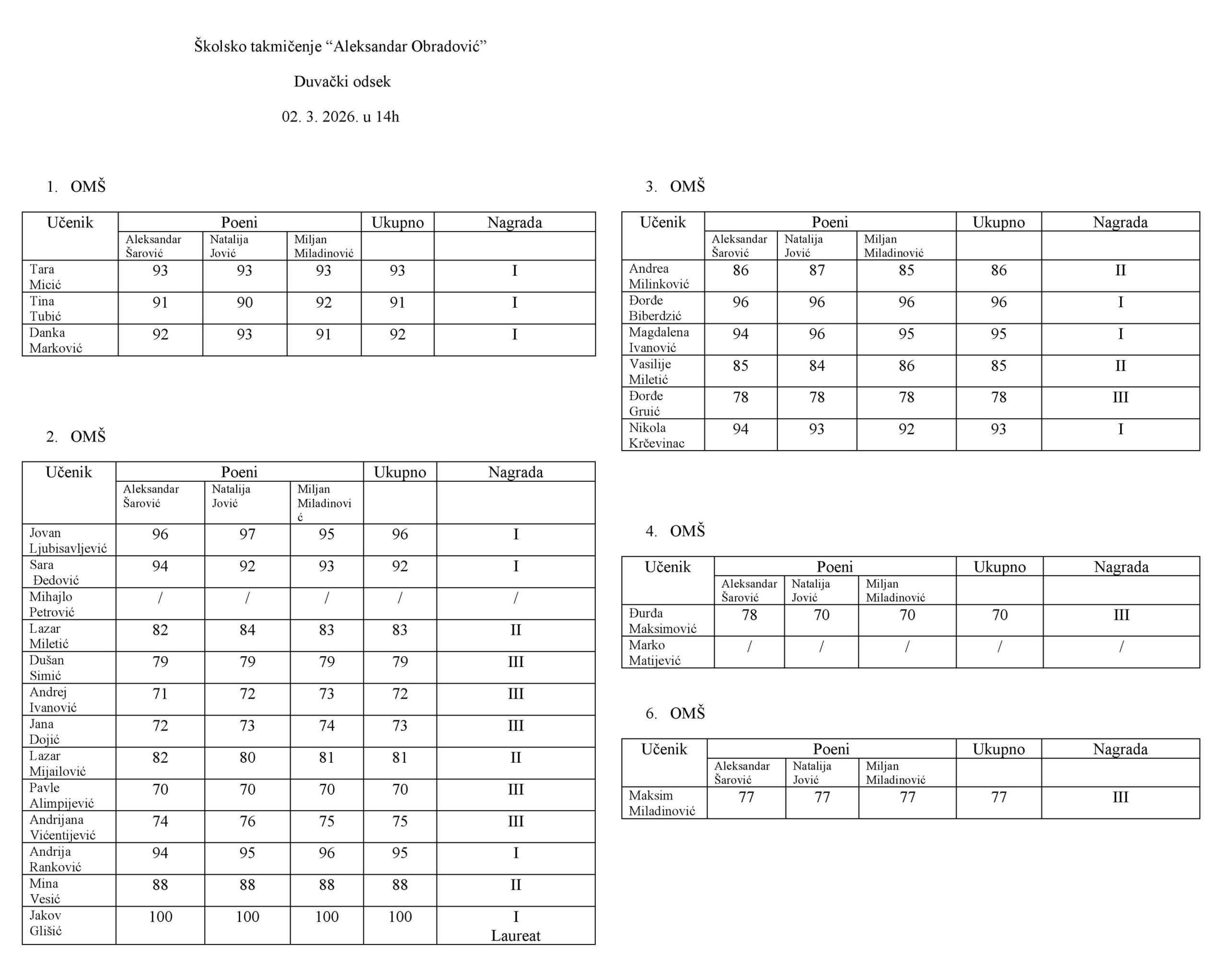 У понедељак 2. марта 2026. године одржано је школско такмичење дувача “Александар Обрадовић”.
