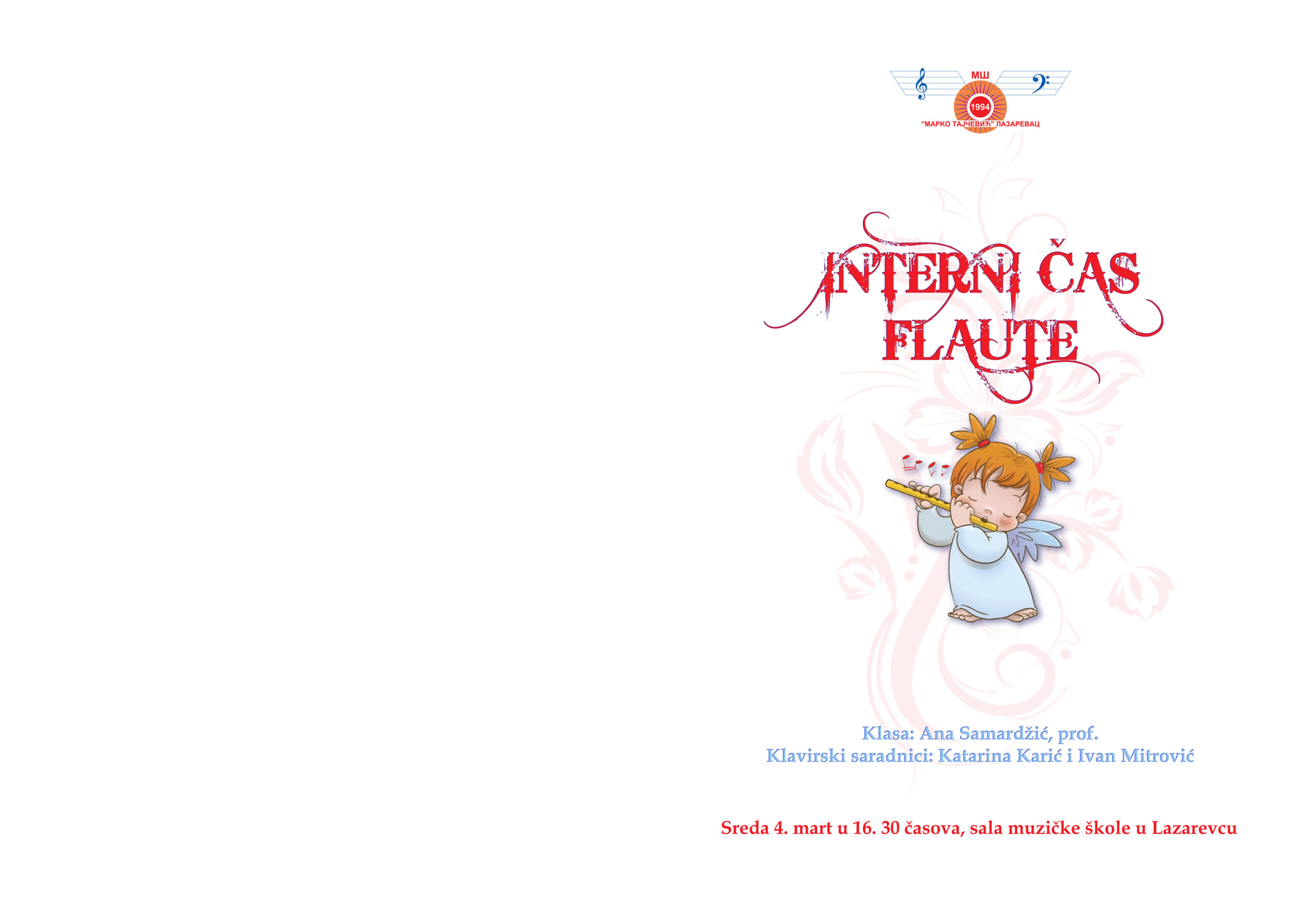 У среду 4. марта са почетком у 16.30 часова у сали музичке школе одржан је Интерни час флауте, класе Ане Самарџић,проф.