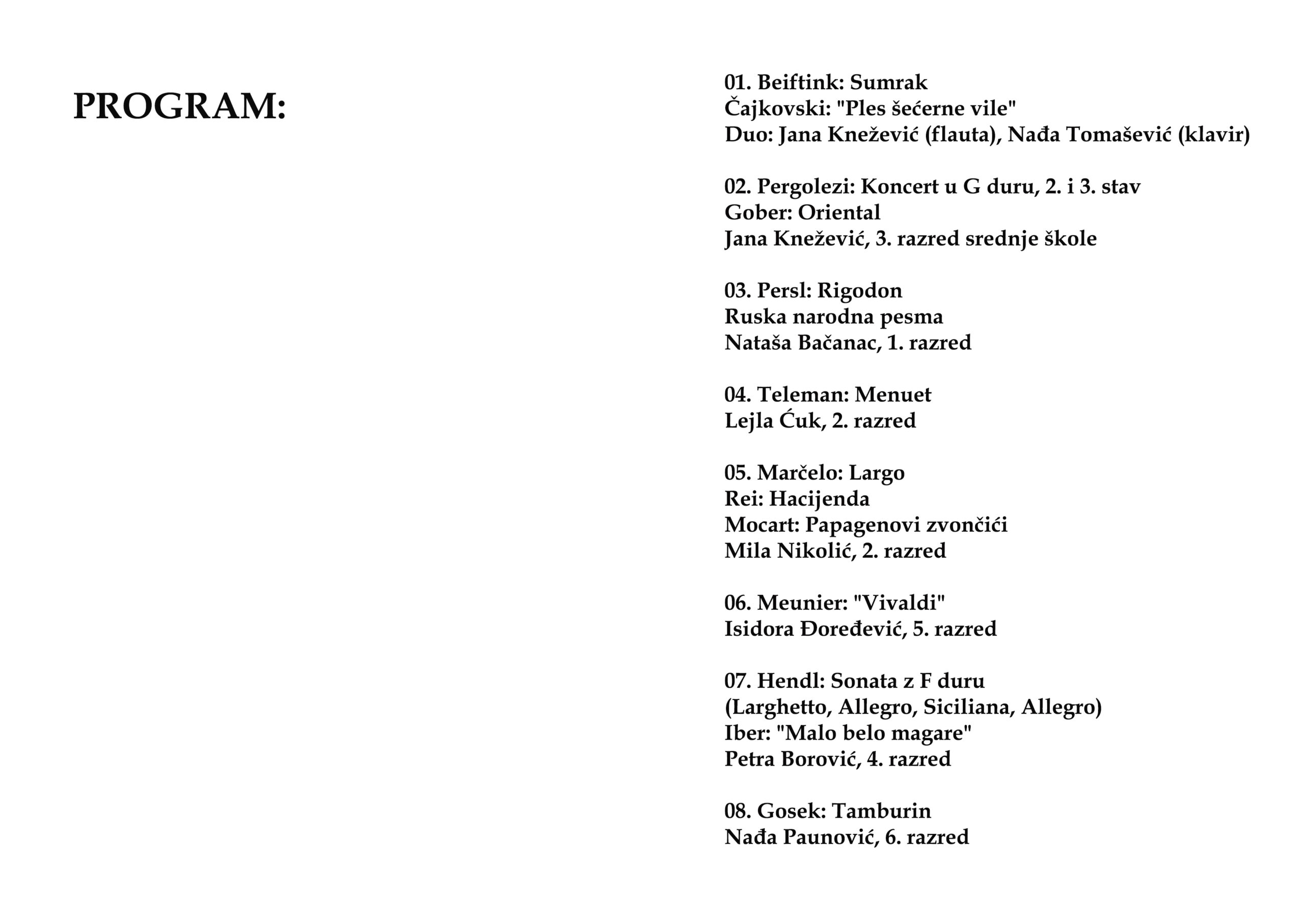 Клавирски сарадници: Катарина Карић и Иван Митровић