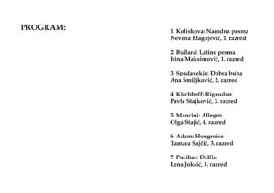 У четвртак 12. марта са почетком у 16 часова, одржан је Интерни час класе флауте (класа: Ана Самарџић) у Вранићу. Ученике је за клавиром пратила Ема Крајновић. Деца су се лепо представила пред родитељима, а нови музички комади су већ подељени за рад и нови наступ у блиској будућности.
